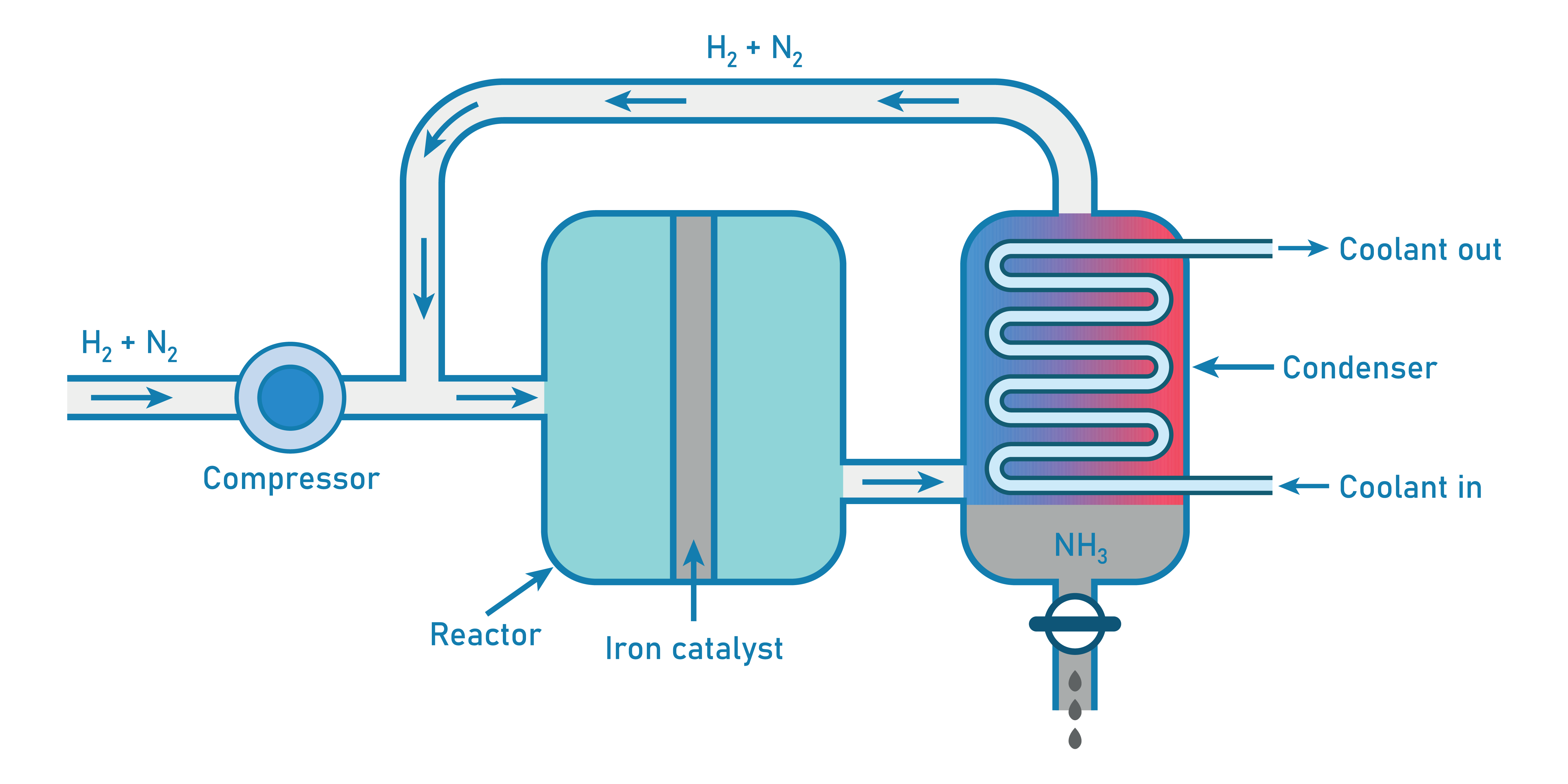 Fritz Haber was obsessed. For years, chemists had battered their heads against the puzzle of nitrogen, coaxing it, bombarding it, but always falling short. Haber, fueled by doggedness and ego, tried something new: combine air (nitrogen) and hydrogen under enormous pressure and heat, then pass it all over a metal catalyst (at first, rare osmium; soon, abundant iron worked almost as well). If luck held, NH₃—ammonia—would form⁴.